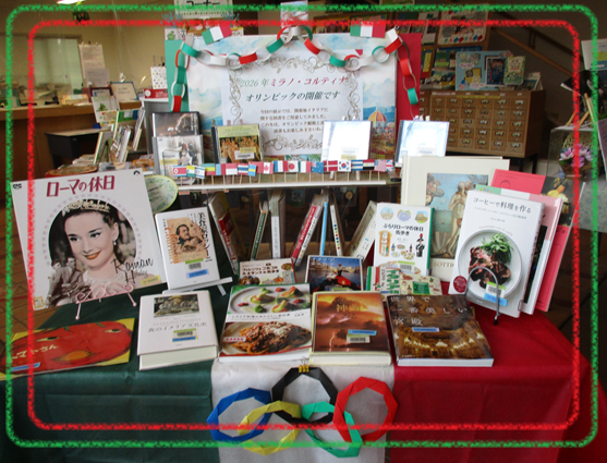 図書館1階には、来年開幕するミラノ・オリンピック★イタリアという場所にちなんで